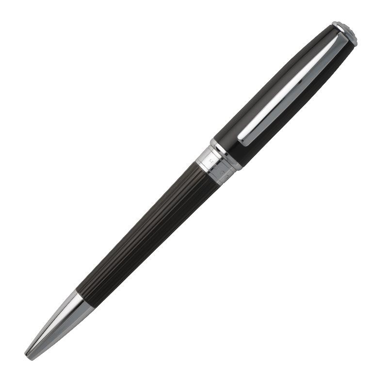 materiał: mosiądz, skuwka: mosiądz, wykończenie skuwki: czarny lakier, srebrny spod spodu na skuwce: tak, korpus: mosiądz, wykończenie korpusu: czarny lakier, srebrny spod spodu na korpusie: nie, elementy metalowe: mosiądz, elementy wykończenia: chromowane, kolor tuszu: niebieski, typ wkładu: wkład typu Parker, pompka: nie, magnetyczne: nie, rysik do ekranów dotykowych: nie