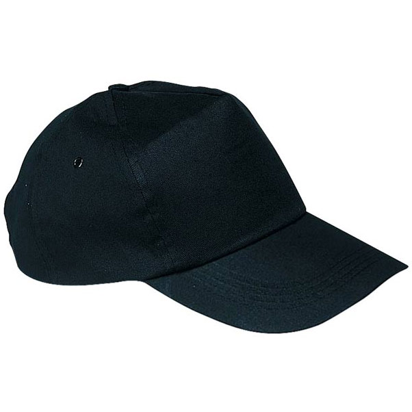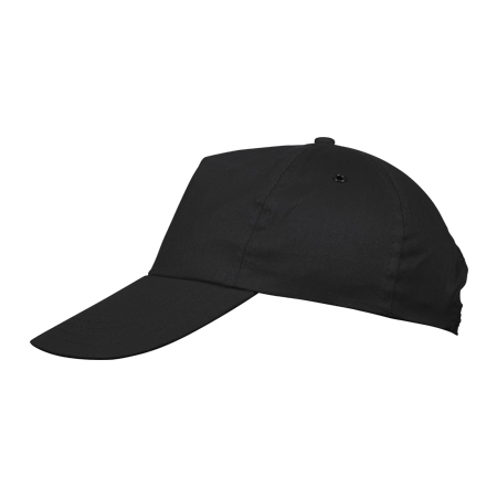 Bawełniana, 5-panelowa czapka z daszkiem. Dostępna w różnych kolorach, zapinana na plastikowy zatrzask.