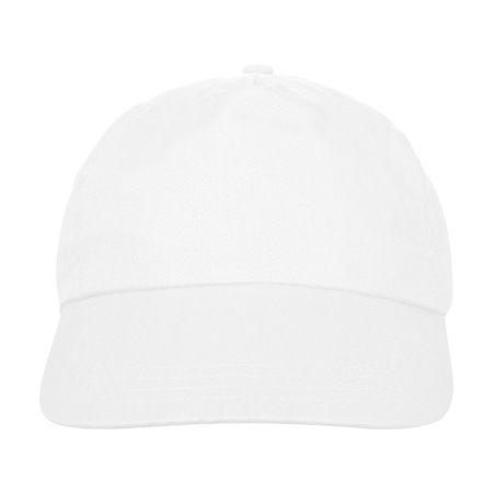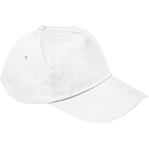 Bawełniana, 5-panelowa czapka z daszkiem. Dostępna w różnych kolorach, zapinana na plastikowy zatrzask.
