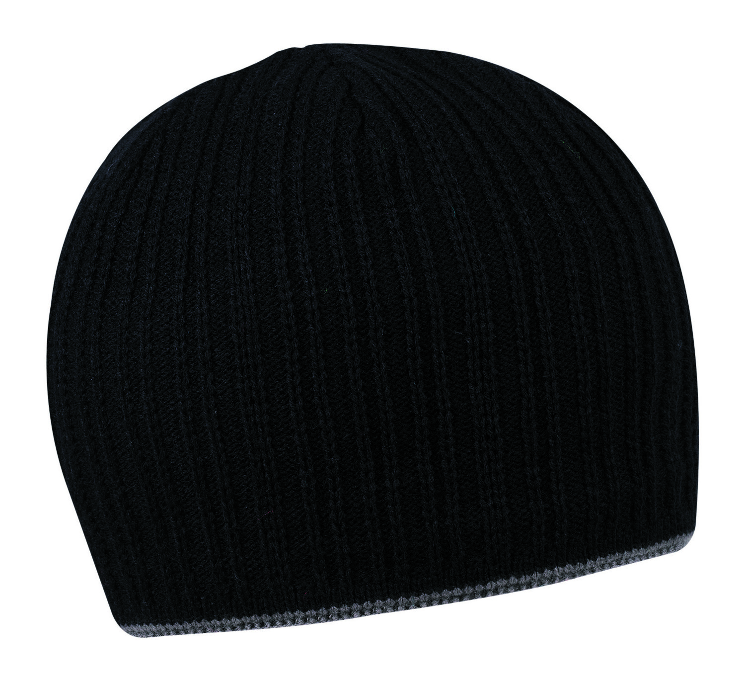 Dwuwarstwowa czapka zimowa, unisex, wykonana z akrylu. Czapka w kolorze czarnym z kolorową lamówką. Dwuwarstwowa czapka zimowa, unisex, wykonana z akrylu. Czapka w kolorze czarnym z kolorową lamówką.