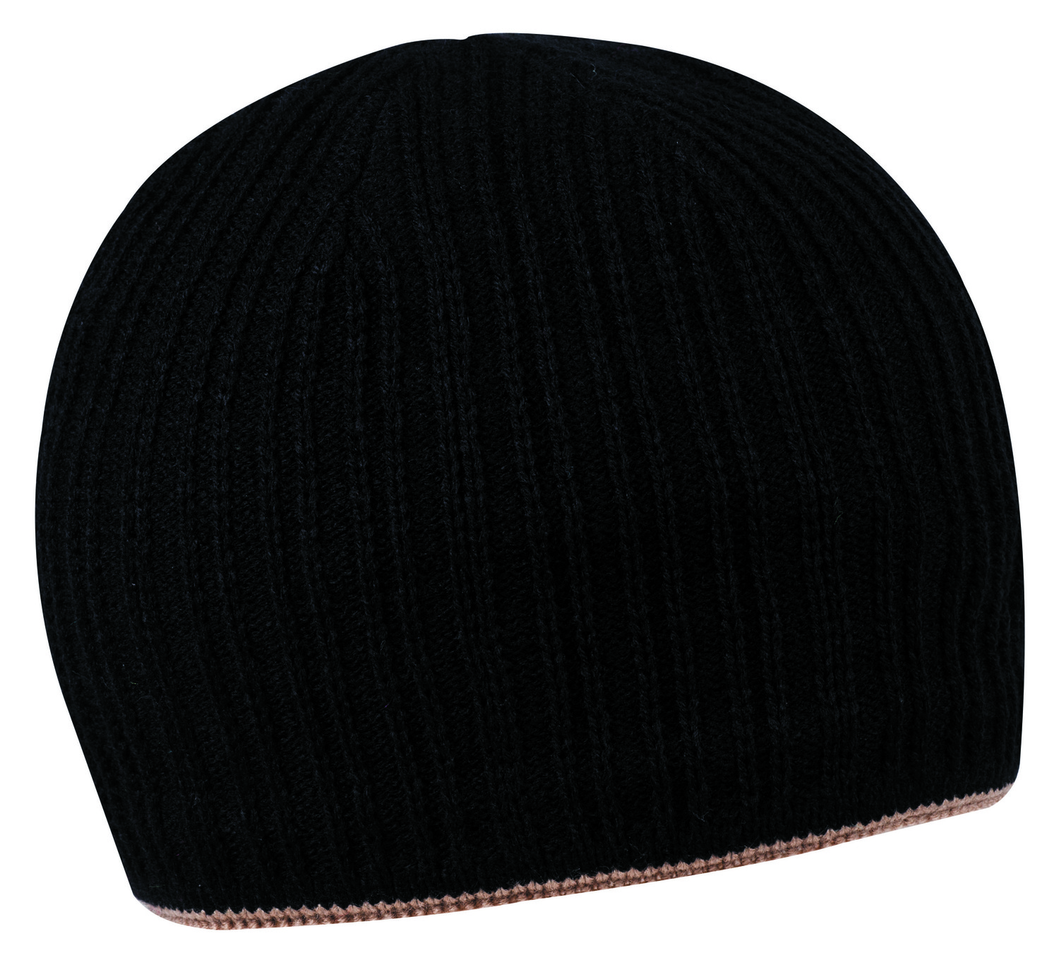 Dwuwarstwowa czapka zimowa, unisex, wykonana z akrylu. Czapka w kolorze czarnym z kolorową lamówką. Dwuwarstwowa czapka zimowa, unisex, wykonana z akrylu. Czapka w kolorze czarnym z kolorową lamówką.