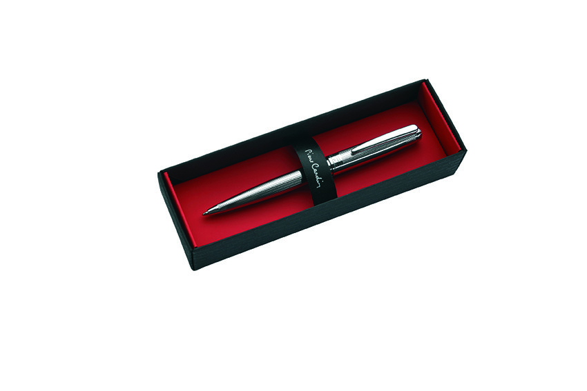 Precyzyjnie wykonany długopis metalowy o oryginalnym wzornictwie. Wyposażony w wysokiej jakości niebieski wkład z końcówką 1 mm. W zestawie z wkładem zapasowym piszącym na czarno. Zapakowany w eleganckie pudełko prezentowe z certyfikatem autentyczności Pierre Cardin.