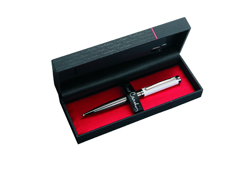 Szykowny, dwukolorowy długopis metalowy z mechanizmem obrotowym. Wyposażony w wysokiej jakości niebieski wkład z końcówką 1 mm. W zestawie z wkładem zapasowym piszącym na czarno. Zapakowany w eleganckie pudełko prezentowe z certyfikatem autentyczności Pierre Cardin.