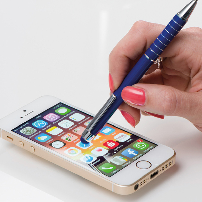 Długopis metalowy z mechanizmem obrotowym i gumką do obsługi ekranów dotykowych. Posiada wkład piszący na niebiesko. Logotyp można umieścić pod klipem. Długopis metalowy z mechanizmem obrotowym i gumką do obsługi ekranów dotykowych. Posiada wkład piszący na niebiesko. Logotyp można umieścić pod klipem.