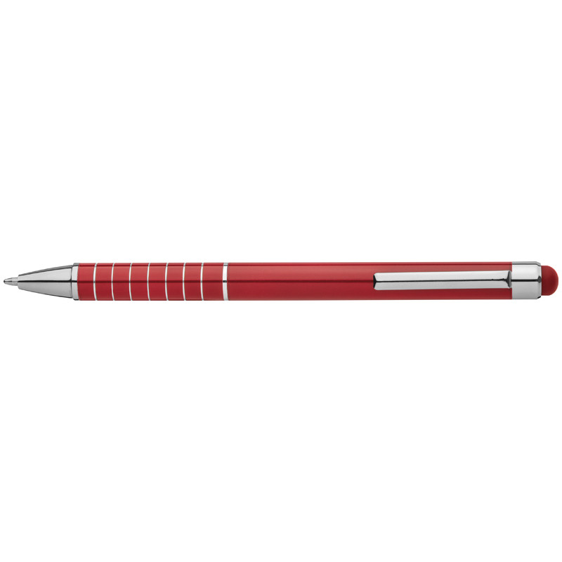 Długopis metalowy z mechanizmem obrotowym i gumką do obsługi ekranów dotykowych. Posiada wkład piszący na niebiesko. Logotyp można umieścić pod klipem. Długopis metalowy z mechanizmem obrotowym i gumką do obsługi ekranów dotykowych. Posiada wkład piszący na niebiesko. Logotyp można umieścić pod klipem.