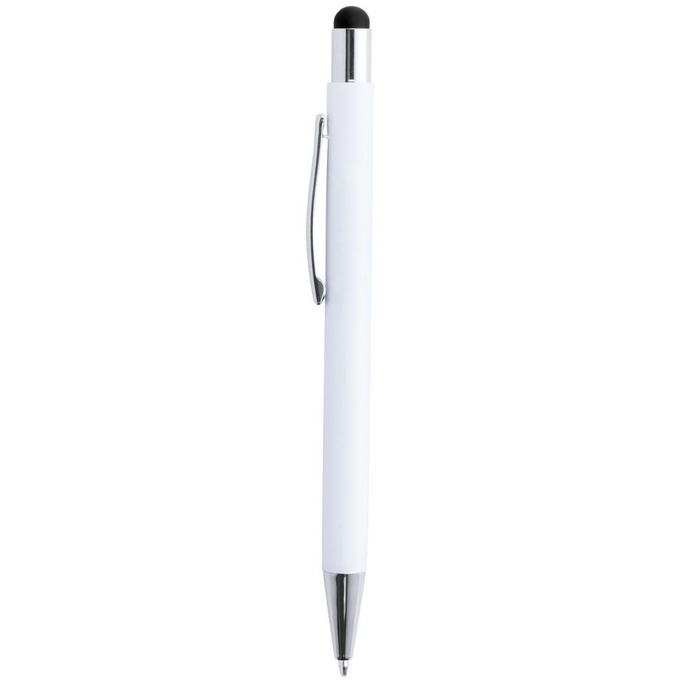 Długopis, touch pen, biały trzon, grawer ukazuje lustrzaną powierzchnię w kolorze gumowej końcówki