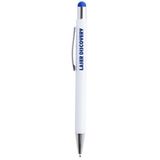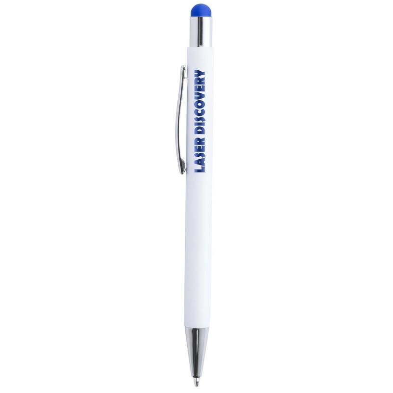 Długopis, touch pen, biały trzon, grawer ukazuje lustrzaną powierzchnię w kolorze gumowej końcówki
