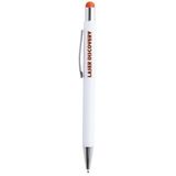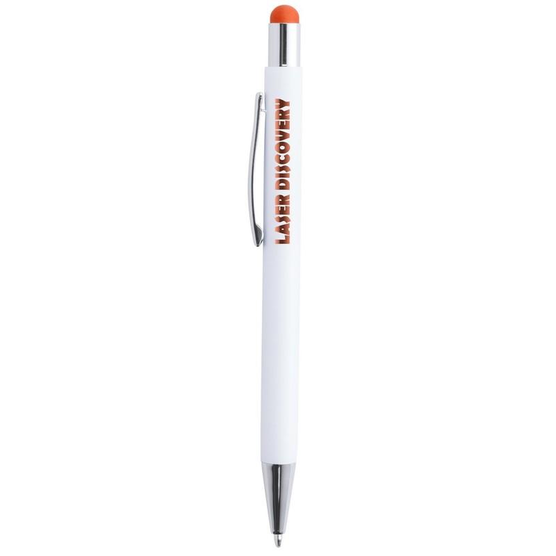 Długopis, touch pen, biały trzon, grawer ukazuje lustrzaną powierzchnię w kolorze gumowej końcówki
