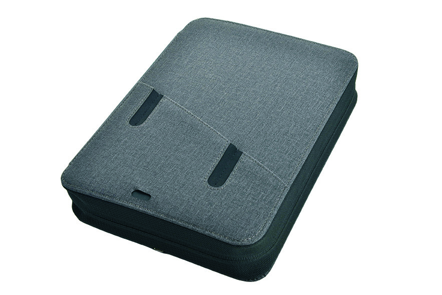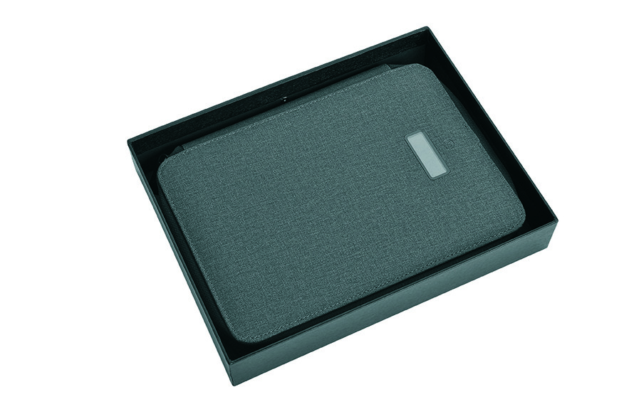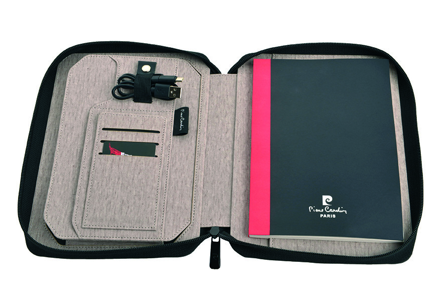 Luksusowy folder wykonany z PU z kieszenią zamykaną na zamek oraz notesem w linie (50 stron). Folder ze zintegrowanym power bankiem 4000 mAh/15.2W (Input: DC5V-2A, Output DC5V-2A). Posiada kieszeń na tablet (rozmiar 8''). Wyposażony w kieszonki na notatki i wizytówki oraz kabel USB (micro USB, type-C and Lightening). Zapakowany w eleganckie pudełko prezentowe z certyfikatem autentyczności Pierre Cardin.