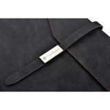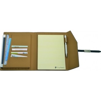 Luksusowy folder z magnetycznym zapięciem, kieszenią na tablet (rozmiar 8″), czterema kieszonkami na wizytówki i trzema na notatki oraz miejscem na długopis. W komplecie notatnik w linie (25 stron), gramatura 80 g/m2. Folder wykończony czerwonymi przeszyciami, zapakowany w eleganckie pudełko prezentowe z certyfikatem autentyczności Pierre Cardin.