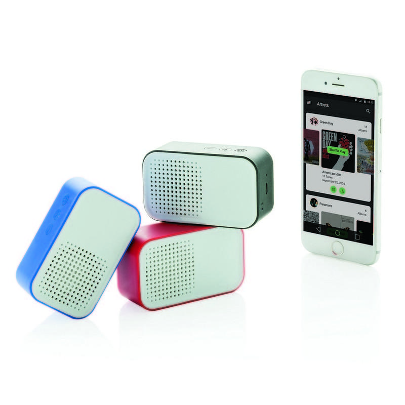 Bezprzewodowy głośnik 3W w stylu retro. Bateria 400 mAh umożliwia słuchanie ulubionej muzyki do 4 h. Posiada przyciski play/pause oraz regulację głośności. Korzysta z Bluetooth 4.1, odległość działania do 10 m. Pełne naładowanie w ciągu 1 h. Obudowa ABS z silikonowymi paskami w dolnej części zapewnia stabilność oraz wysoką jakość dźwięku. W komplecie kabel micro USB do ładowania.