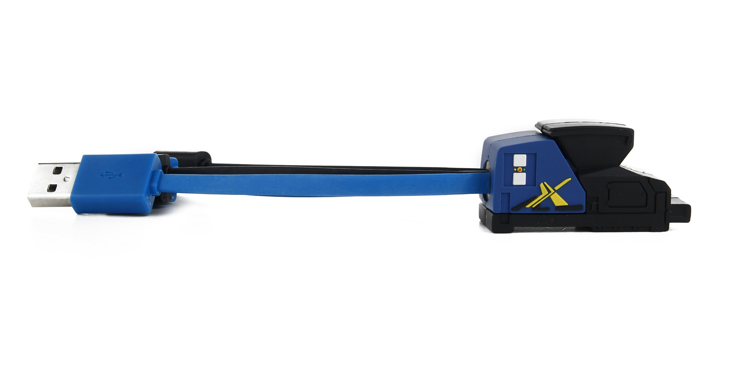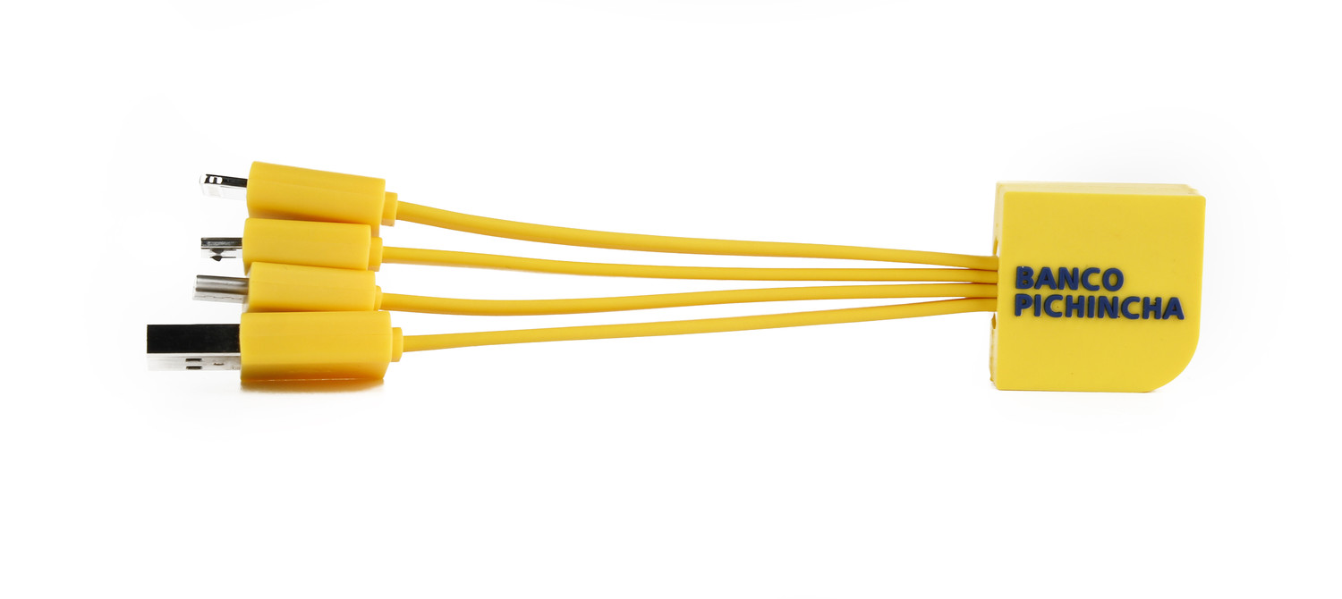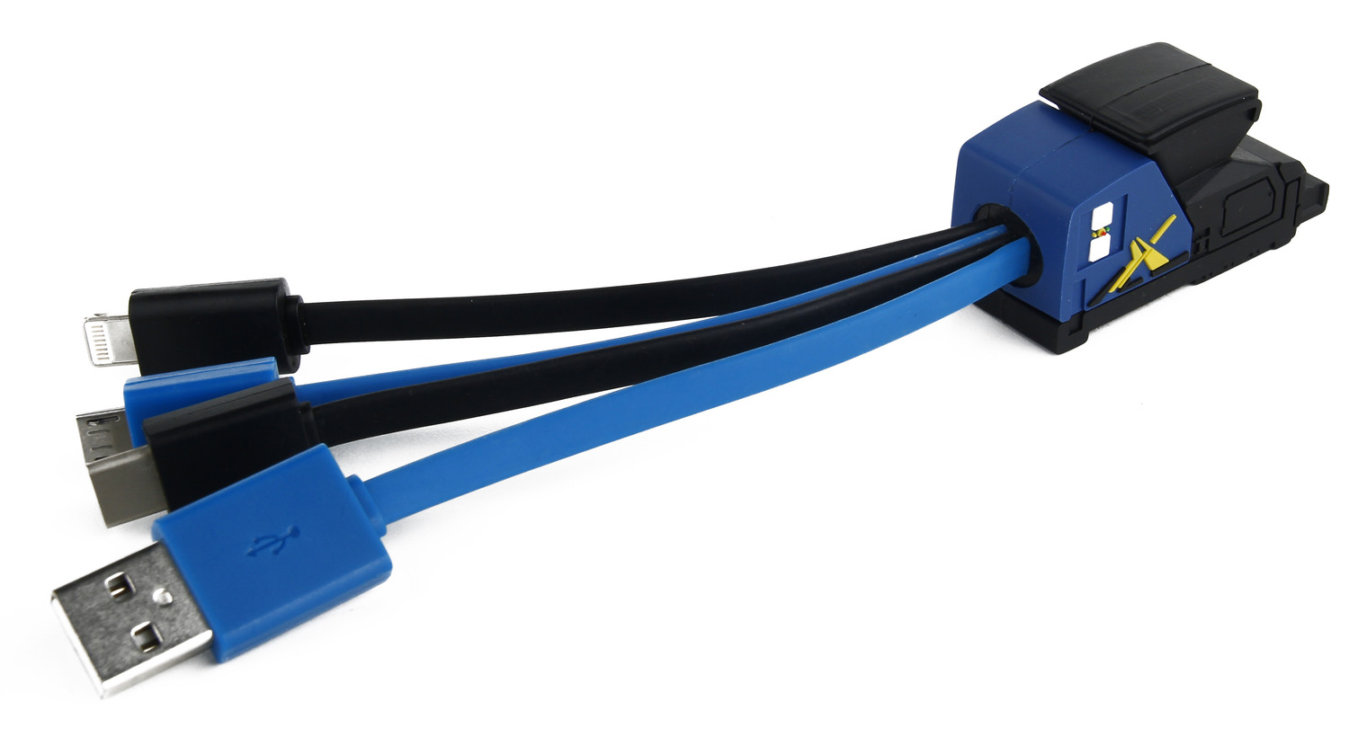 Kabel do ładowania w indywidualnym kształcie. Kabel wyposażony w końcówki: USB, micro USB, lightning (dla iPhone'a) i type-C. Dostępne warianty kolorystyczne wg. palety Pantone, m. in.: czarny, biały, niebieski, czerwony, pomarańczowy, żółty, zielony, fioletowy, granatowy, szary, różowy.