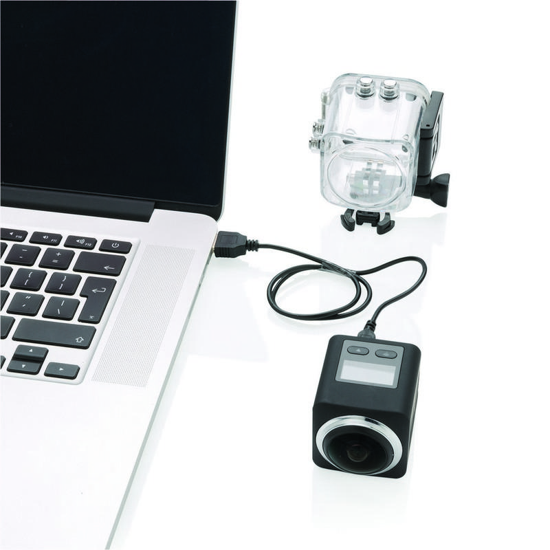Unikalna kamera sportowa stworzona do robienia spektakularnych filmów 360 stopni. Wysokiej jakości soczewki oraz ekran LCD umożliwiają nagrywanie niesamowitych filmów podczas podróży, aktywności outdoor, uprawiania sportu, festiwali lub koncertów. Wejście na kartę SD (karta nie jest dołączona do zestawu) zwiększa pamięć urządzenia nawet do 128 GB. Bateria 1000 mAh pozwala na nagrywanie filmów do 2 godzin. W komplecie znajduje się 19 akcesoriów takich jak mocowanie do kasku, odporna na wodę obudowa (do 30 m) i wiele innych. Zestaw zapakowany w luksusowe pudełko podarunkowe.