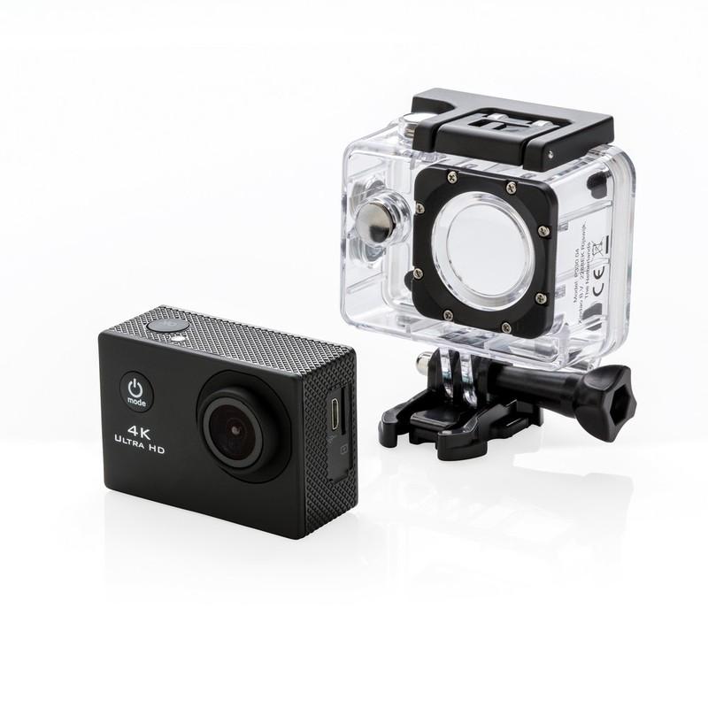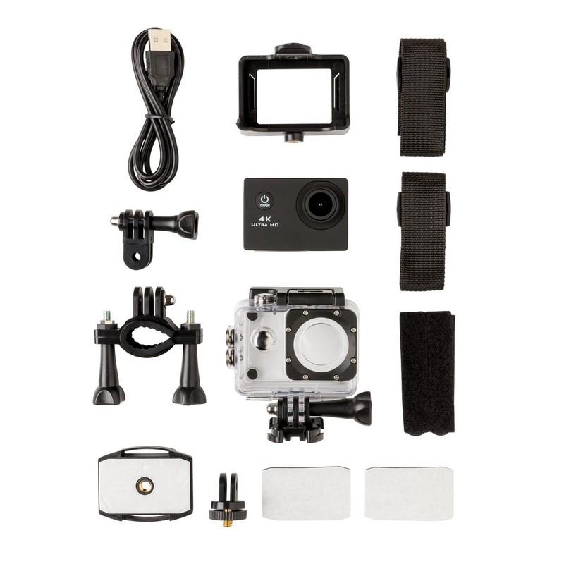 Najnowocześniejsza kamera sportowa HD z rozdzielczością 4K. Posiada wyświetlacz TFT LCD 1,5'' do oglądania filmów od razu po nagraniu w wysokiej jakości. Pamięć kamery może zostać rozszerzona nawet do 32 GB przy pomocy karty pamięci micro SD (karta nie jest dołączona do kompletu). W komplecie wodoodporna obudowa. Czas nagrywania to około 70 minut. Kamera posiada 11 akcesoriów: wodoodporny pokrowiec, uchwyt do zamocowania na kasku, uchwyt rowerowy, klip, złącze, przegub, 2 paski, 2 kawałki taśmy, kabel micro USB do ładowania. Pojemność akumulatora 650 mAh. Wodoodporna do 30 metrów.