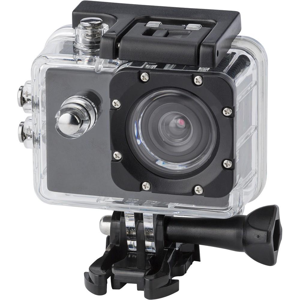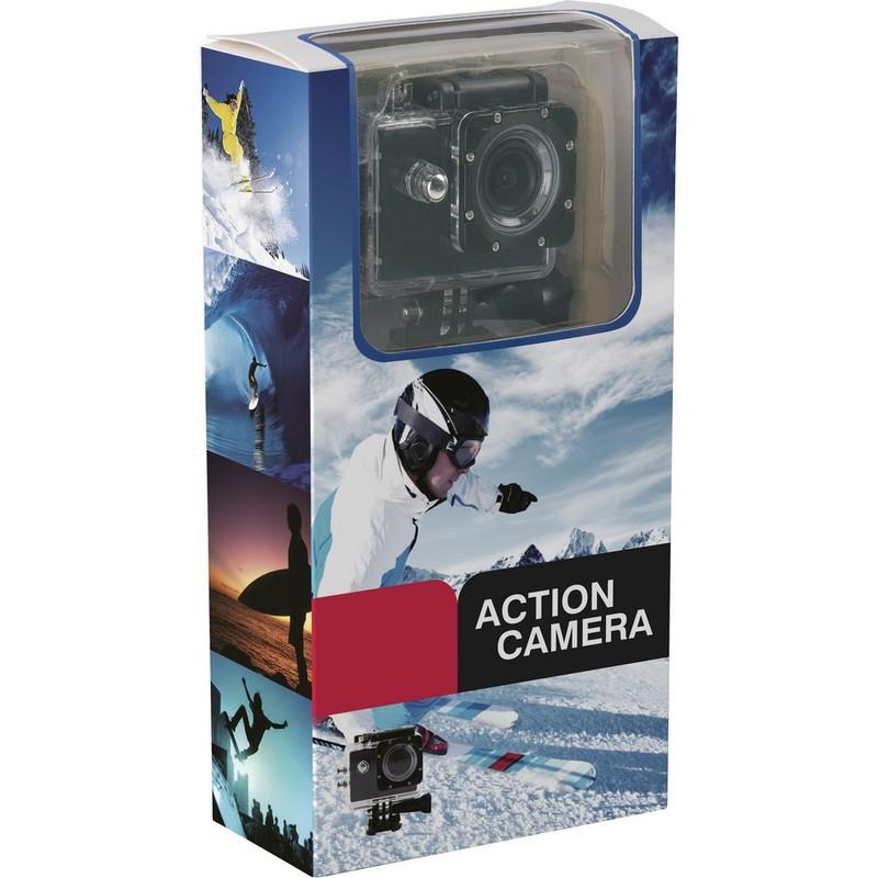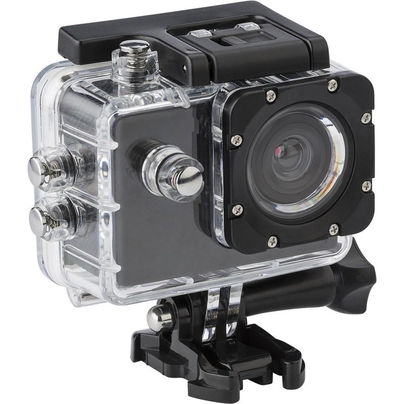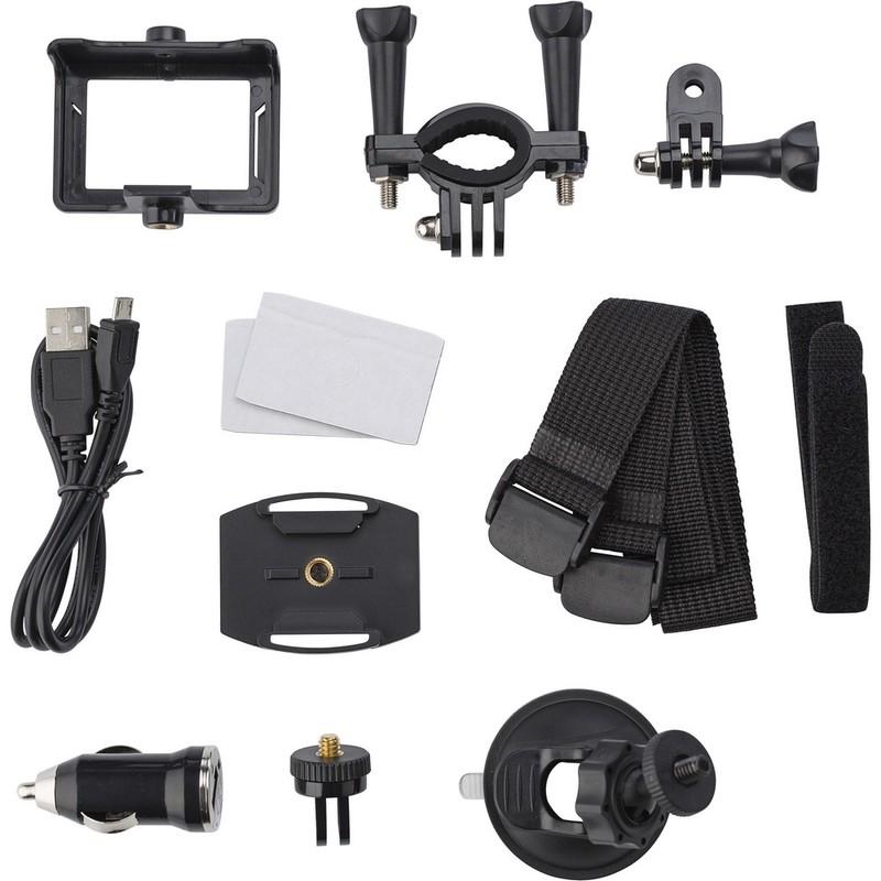 Kamera sportowa HD o rozdzielczości 720P, ekran 1.3 Mpx, wodoszczelna do 30 m, szerokokątne soczewki, 15 akcesoriów i karta pamięci 16 GB w komplecie