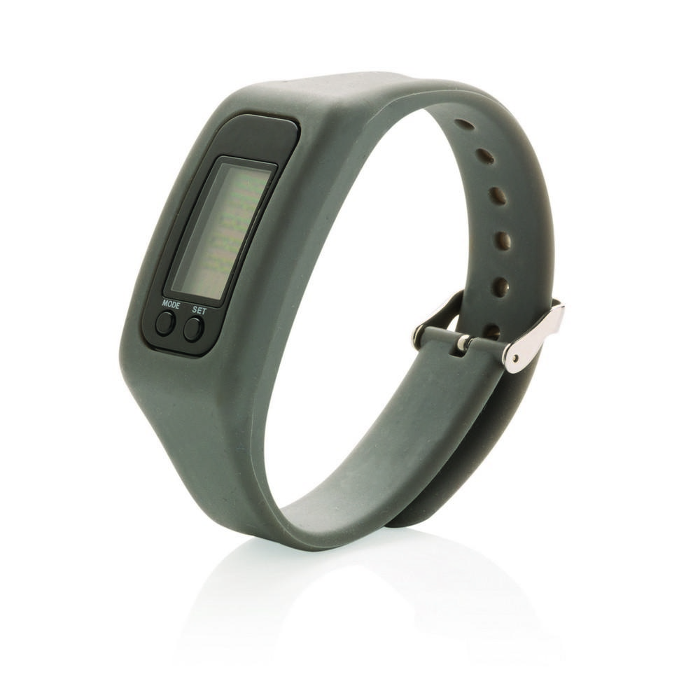 Bransoletka z krokomierzem z ABS i wyświetlaczem z akrylu. Wygodny w noszeniu silikon zapewnia komfort użytkowania, a możliwość regulacji pozwala na dostosowanie rozmiaru bransoletki do indywidualnych potrzeb. Urządzenie liczy kroki, spalone kalorie oraz przebyty dystans. Żywotność baterii, przy normalnym korzystaniu, to około 1 roku. Baterie w komplecie.