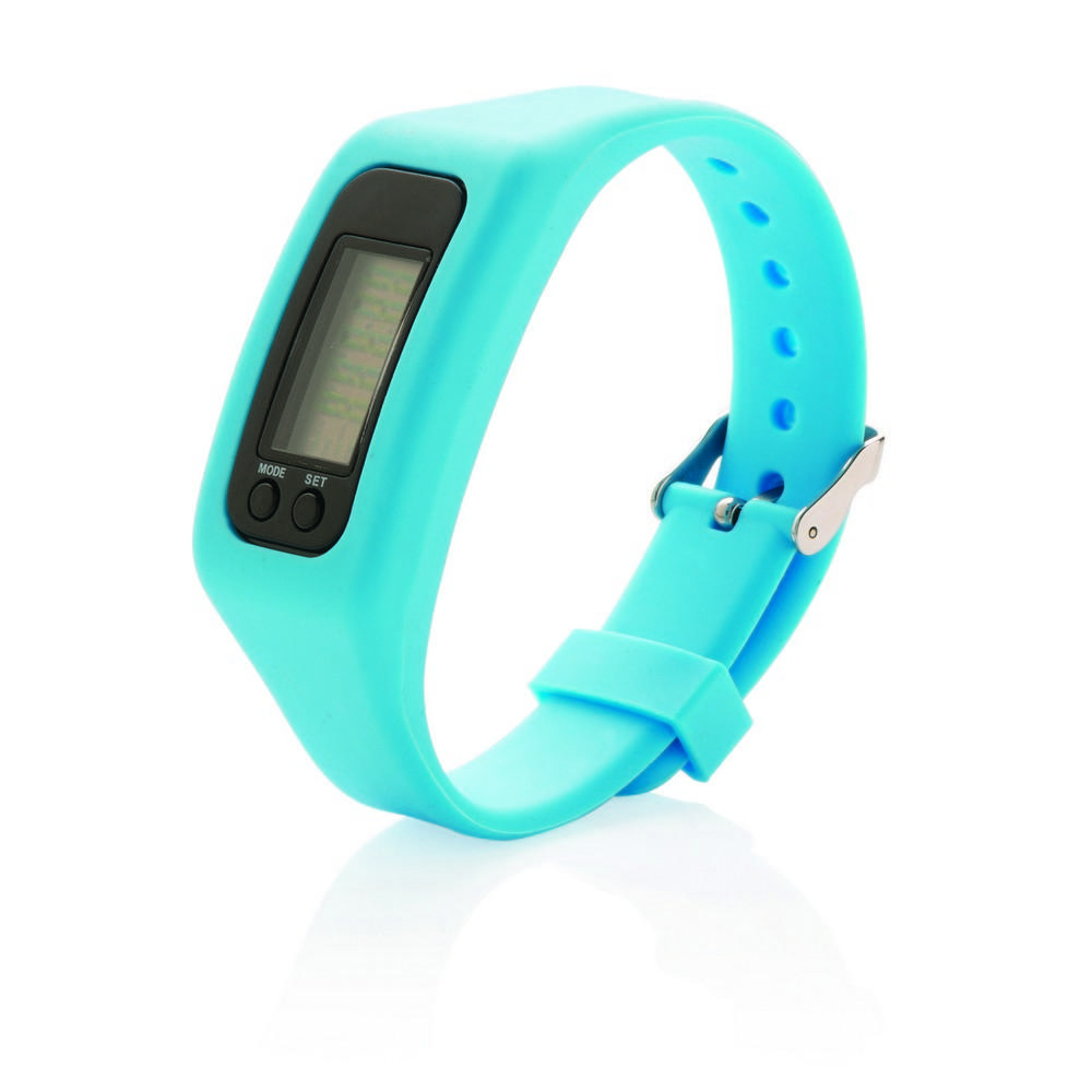 Bransoletka z krokomierzem z ABS i wyświetlaczem z akrylu. Wygodny w noszeniu silikon zapewnia komfort użytkowania, a możliwość regulacji pozwala na dostosowanie rozmiaru bransoletki do indywidualnych potrzeb. Urządzenie liczy kroki, spalone kalorie oraz przebyty dystans. Żywotność baterii, przy normalnym korzystaniu, to około 1 roku. Baterie w komplecie.