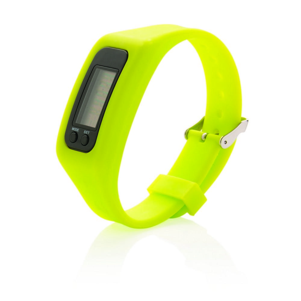 Bransoletka z krokomierzem z ABS i wyświetlaczem z akrylu. Wygodny w noszeniu silikon zapewnia komfort użytkowania, a możliwość regulacji pozwala na dostosowanie rozmiaru bransoletki do indywidualnych potrzeb. Urządzenie liczy kroki, spalone kalorie oraz przebyty dystans. Żywotność baterii, przy normalnym korzystaniu, to około 1 roku. Baterie w komplecie.