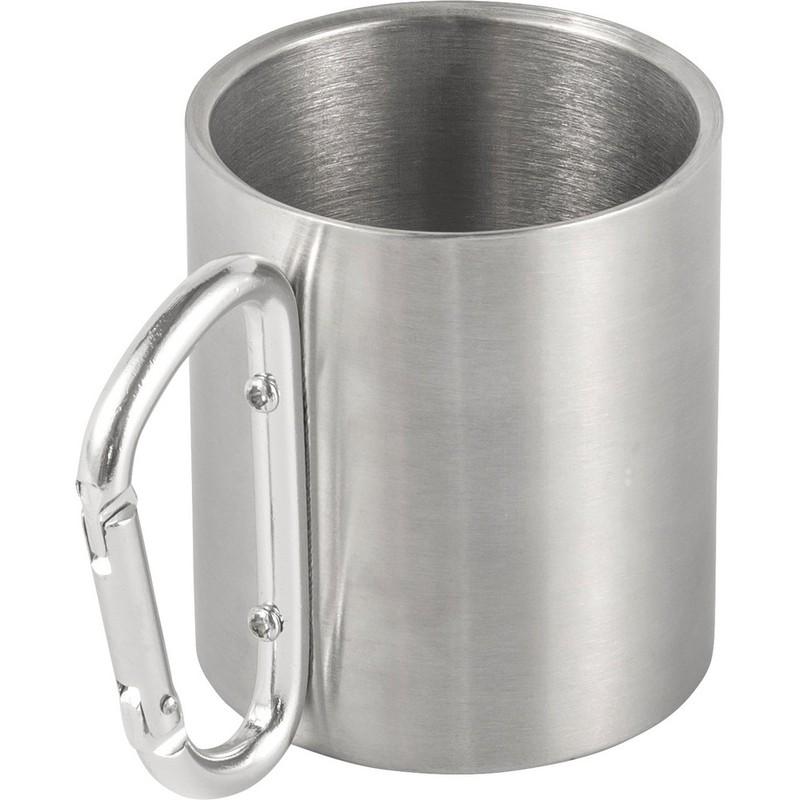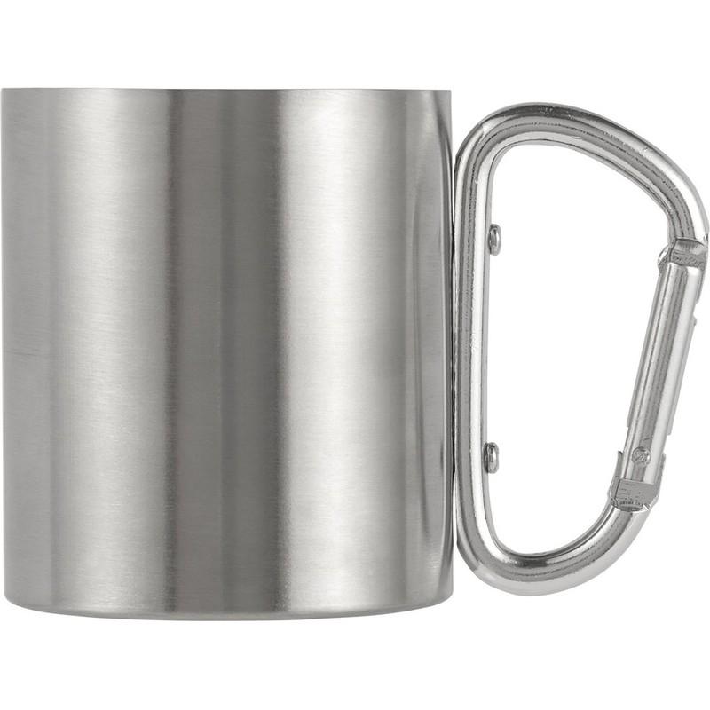 Kubek podróżny 200 ml, podwójne ścianki ze stali nierdzewnej, karabińczyk w rączce