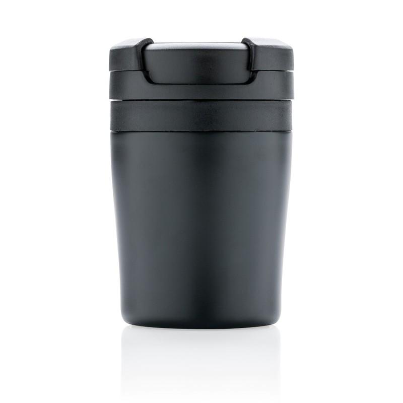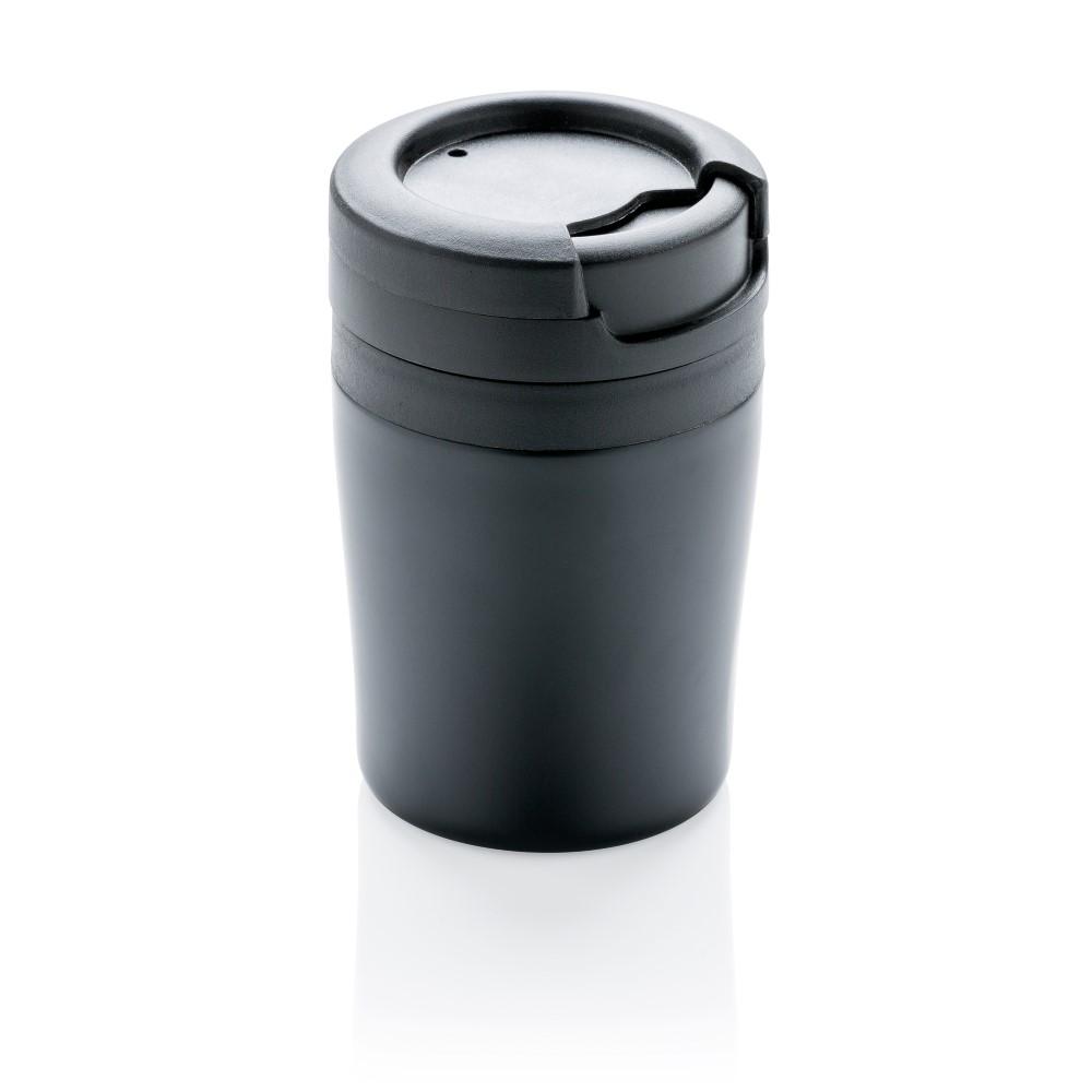Mniej znaczy więcej. Ten kubek z 8 cm wysokości i podwójnymi ściankami doskonale pasuje pod ekspresy do kawy. Pojemność 160 ml, wnętrze wykonane z PP, łatwe w użyciu i chroniące przed rozlaniem wieczko. Nadaje się do kawy Ristretto, Espresso oraz Lungo. Należy myć ręcznie. Wzór zastrzeżony®
