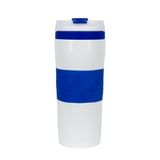 Kubek termiczny 330 ml Air Gifts, z kolorową silikonową opaską, miedziana izolacja próżniowa, podwójne ścianki ze stali nierdzewnej z próżnią między ściankami, dzięki czemu zachowuje funkcje termosu i długo utrzymuje temperaturę nie oddając jej na zewnątrz, plastikowe wieczko, szczelne zamknięcie, nie wymaga obsługi oburącz, błyszczące wykończenie