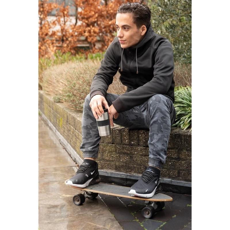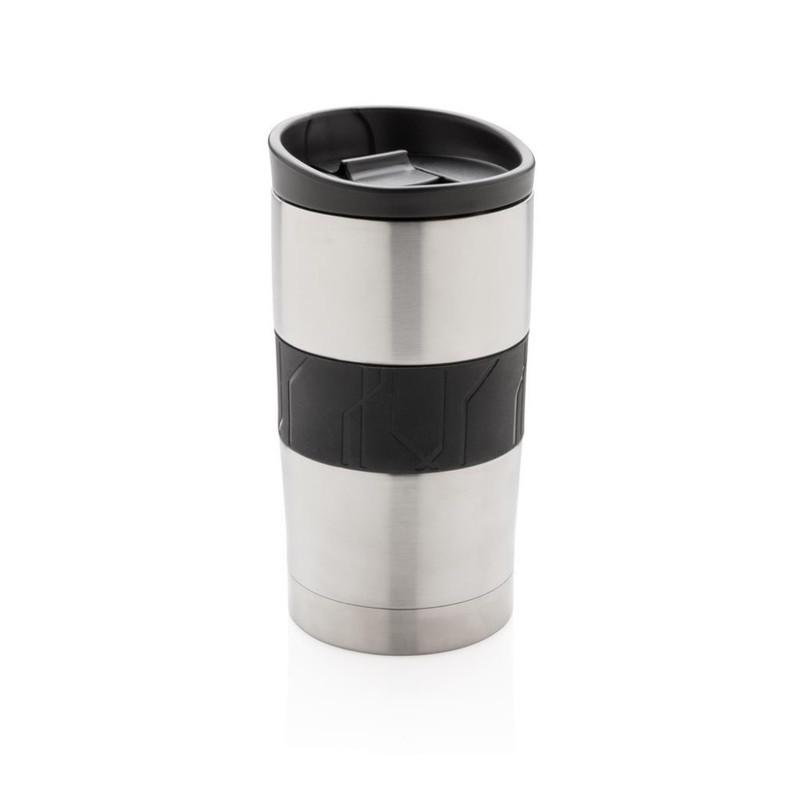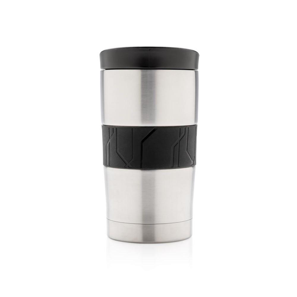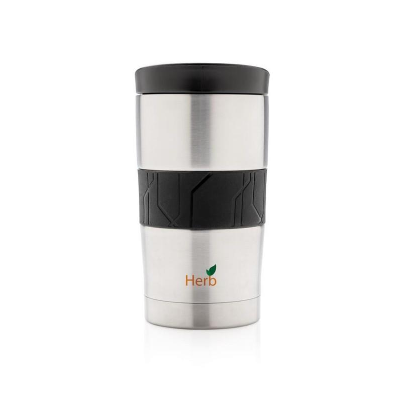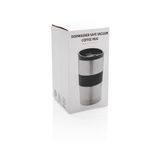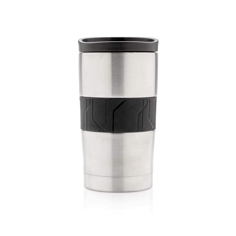 Kubek termiczny 350 ml, podwójne ścianki ze stali nierdzewnej 304 z próżnią między ściankami, szczelne zamknięcie, nie wymaga obsługi oburącz, silikonowy uchwyt, można myć w zmywarce, pasuje do większości ekspresów do kawy