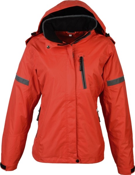 Stylowa wodo- i wiatroodporna kurtka jesienna. Posiada dwie boczne kieszenie, kieszeń na klatce piersiowej, wewnętrzną kieszeń, odpinany kaptur, regulowany ściągacz na rękawach i lamówce, odblaskowe elementy. Materiał: 100% nylon. Wodoodporność: 30,000 mm. Przepuszczalność powietrza: 6,500 mvp.