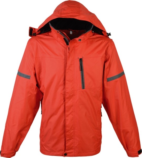 Stylowa wodo- i wiatroodporna kurtka jesienna. Posiada dwie boczne kieszenie, kieszeń na klatce piersiowej, wewnętrzną kieszeń, odpinany kaptur, regulowany ściągacz na rękawach i lamówce, odblaskowe elementy. Materiał: 100% nylon. Wodoodporność: 30,000 mm. Przepuszczalność powietrza: 6,500 mvp. Stylowa wodo- i wiatroodporna kurtka jesienna. Posiada dwie boczne kieszenie, kieszeń na klatce piersiowej, wewnętrzną kieszeń, odpinany kaptur, regulowany ściągacz na rękawach i lamówce, odblaskowe elementy. Materiał: 100% nylon. Wodoodporność: 30,000 mm. Przepuszczalność powietrza: 6,500 mvp.