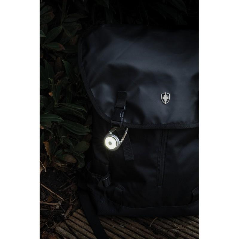 Aluminiowa lampka z karabińczykiem z ultra jasnym światłem COB. Posiada trzy tryby oświetlenia: mocne, delikatne i migające, aby sprostać każdej sytuacji. Baterie w komplecie.