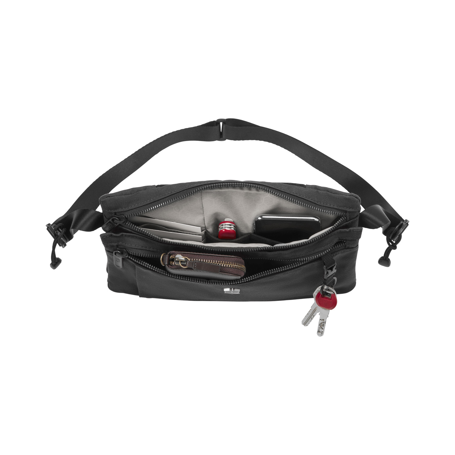 Lifestyle Accessory Compact Crossbody to praktyczna torba tzw. listonoszka. Łączy elegancki styl z funkcjonalnością, zapewniając ochronę swej zawartości i wygodę podczas codziennych czynności. Posiada komorę główną, zapinaną na zamek, która jest wyposażona w kieszeń z siateczki i przegrody na szwajcarski nóż oficerski oraz inne akcesoria. Przemyślane detale – między innymi dodatkowa rączka ułatwiająca podnoszenie torby, regulowany pas na ramię, system szybkiego zapinania i przewiewny materiał od strony ciała – sprawiają, że jest to model doskonale odpowiadający potrzebom nowoczesnego stylu życia. Kiedy żyjesz w biegu, nie chcesz martwić się o drobiazgi, a funkcjonalna torba zapewni Ci spokój ducha podczas codziennych podróży.System szybkiego zapinania ułatwia regulację pasa na ramięPrzewiewna siateczka od strony ciała podnosi komfort użytkowaniaZapinana na zamek komora główna z kieszenią z siateczki, kieszonką na szwajcarski nóż oficerski i różnorodnymi przegrodami na akcesoria