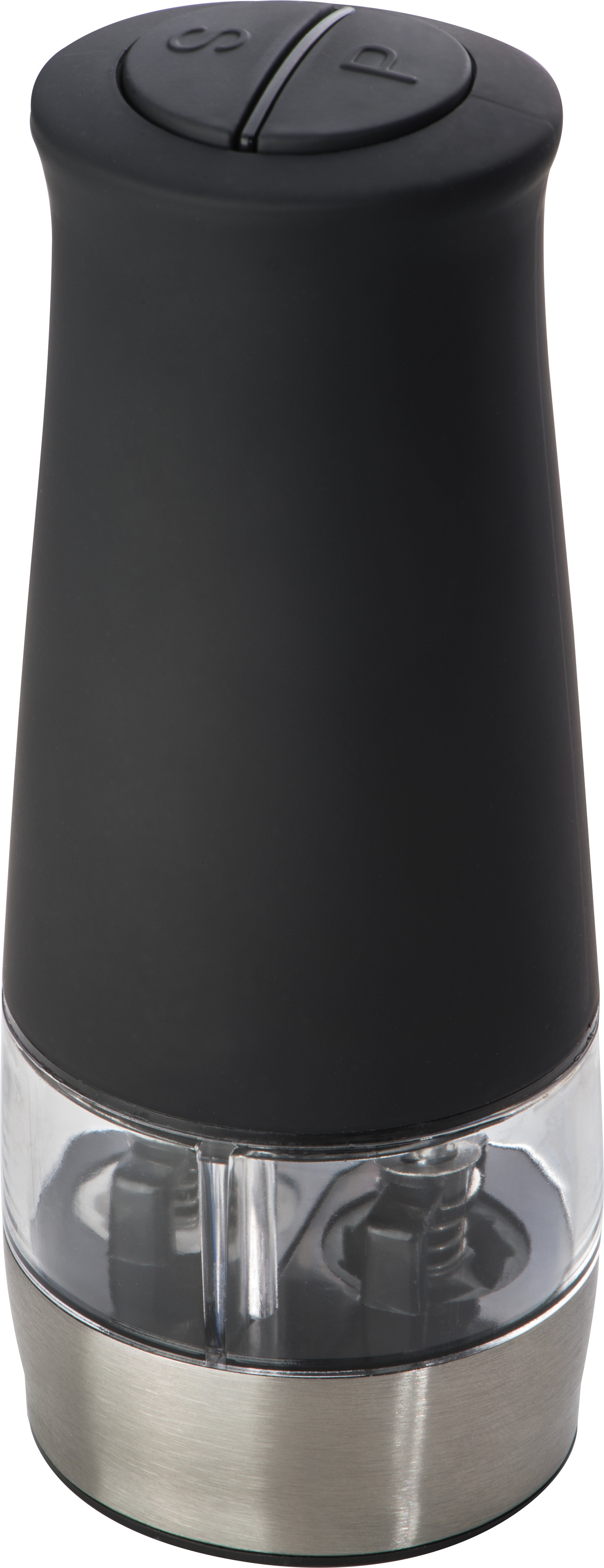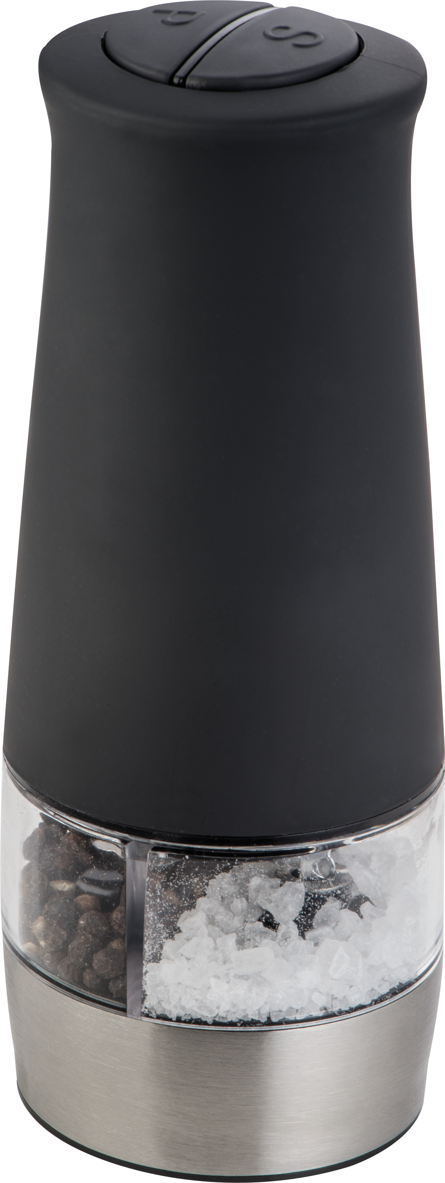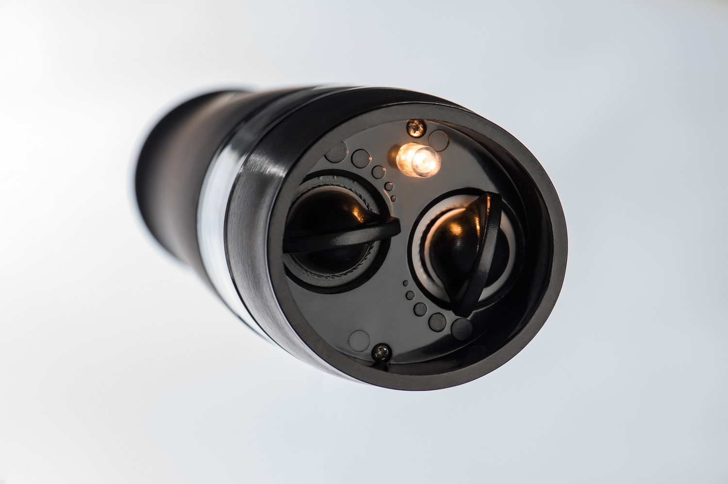 Elektryczny młynek do soli i pieprzu. Posiada dwie oddzielne komory, które mogą być niezależnie obsługiwane za pomocą przycisków. Elektryczny młynek do soli i pieprzu. Posiada dwie oddzielne komory, które mogą być niezależnie obsługiwane za pomocą przycisków.