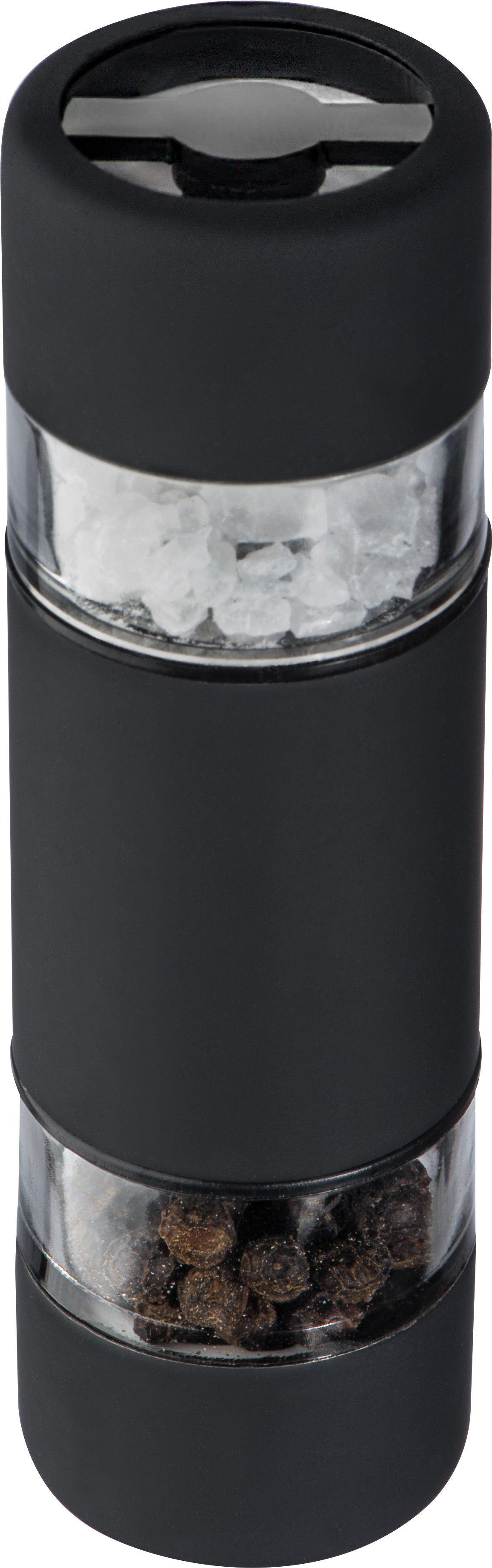 Niewielki młynek do soli i pieprzu wykonany z gumowanego metalu. Młynek posiada mechanizm ceramiczny. Niewielki młynek do soli i pieprzu wykonany z gumowanego metalu. Młynek posiada mechanizm ceramiczny.