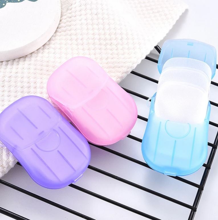 Mydło w Papierku wyposażone jest w swój własny pojemnik, który mieści się w torebce, kieszeni lub portfelu. Opakowanie zawiera 20 szt. jednorazowych mydełek. Dostępne kolory: różowy, niebieski, żółty, fioletowy, zielony.