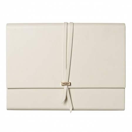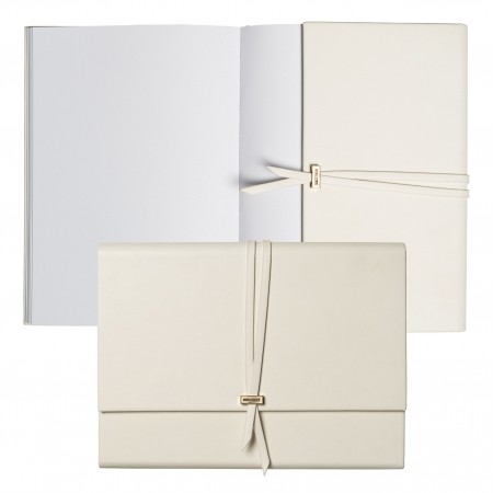 Crafted in an elegant soft ivory material, the Lien A5 notebook from Nina Ricci is luxurious with its two ropes passing under the understated light gold signature bridge.