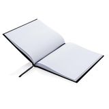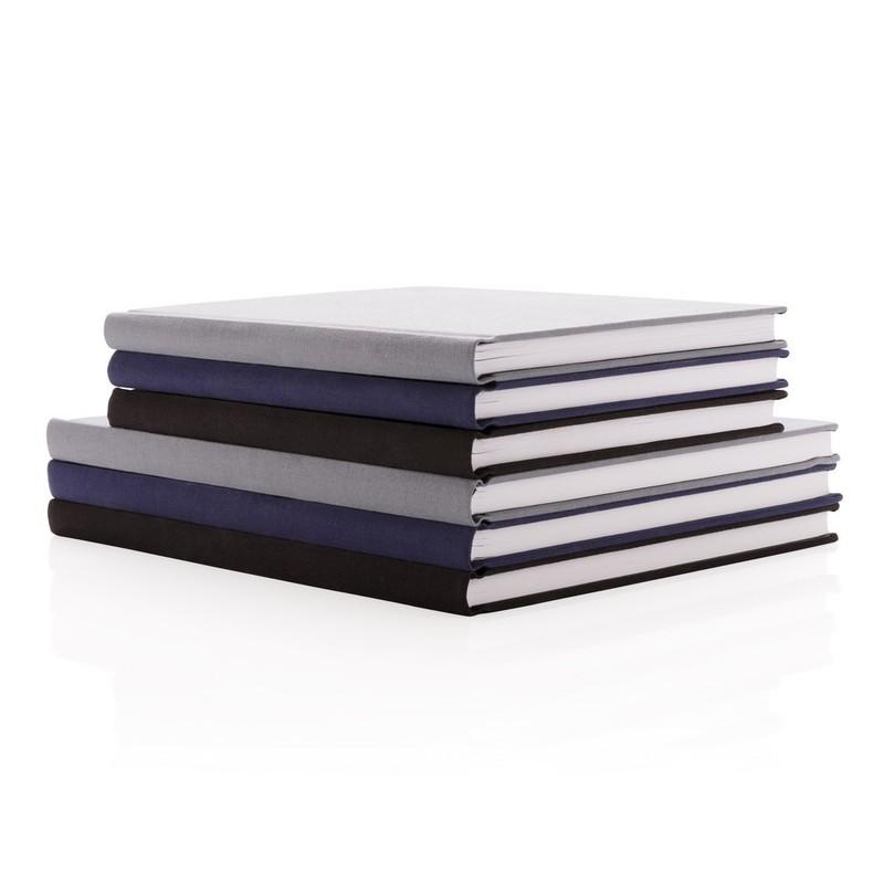 Notatnik Deluxe z okładką z wysokiej jakości tkaniny introligatorskiej i tasiemką zakładkową. Wewnątrz 96 kartek z białego papieru 80 g/m2.