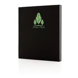 Notatnik Deluxe z okładką z wysokiej jakości tkaniny introligatorskiej i tasiemką zakładkową. Wewnątrz 96 kartek z białego papieru 80 g/m2.
