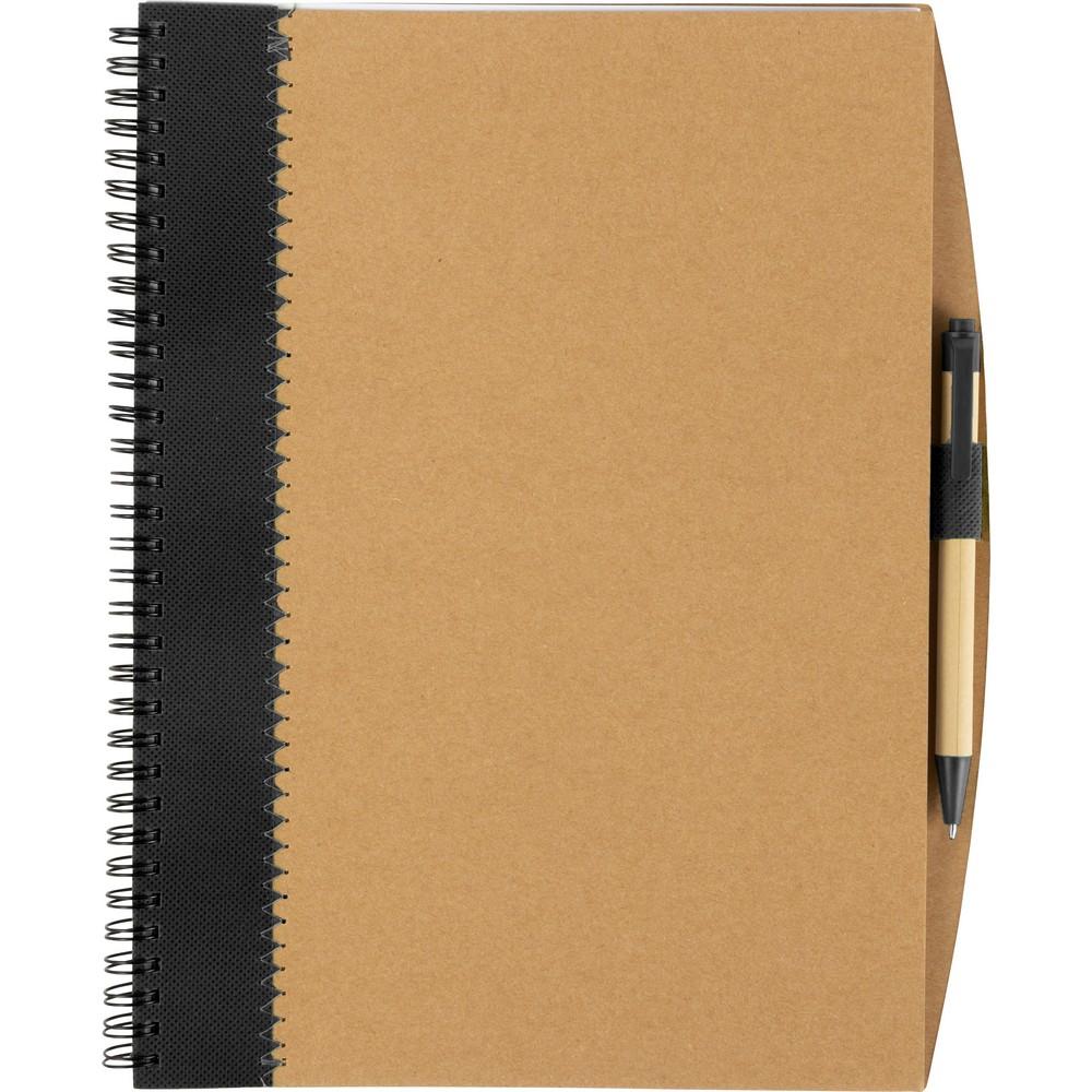 Notatnik (ok. A4, 70 pustych kartek), dopasowany papierowy długopis z biodegradowalnymi elementami korpusu