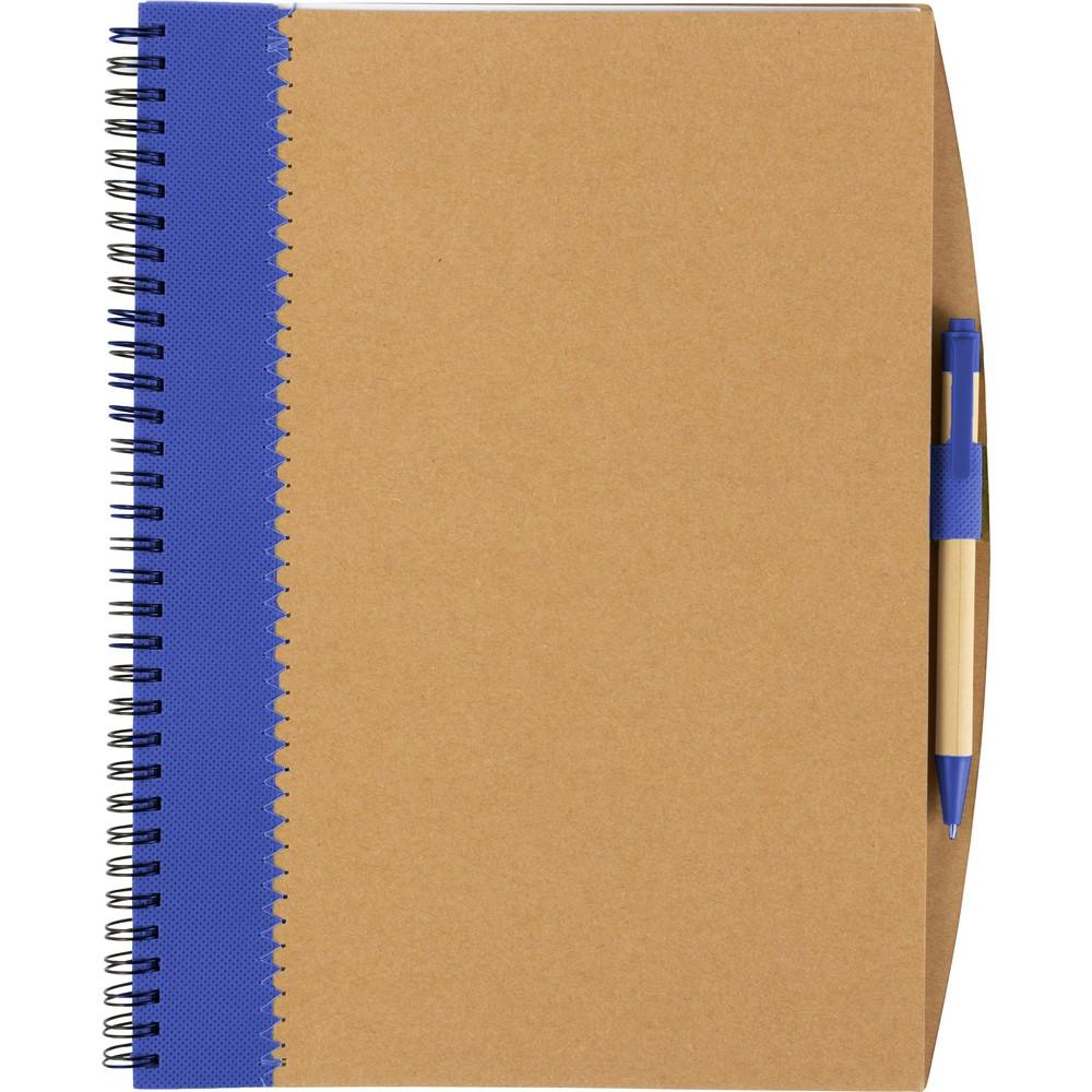 Notatnik (ok. A4, 70 pustych kartek), dopasowany papierowy długopis z biodegradowalnymi elementami korpusu