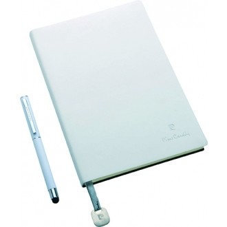 Elegancki notes o formacie A5 w komplecie z piórem kulkowym. Notes posiada 224 strony (80 g/m2), zakładkę z metalowym elementem oraz przyjemną w dotyku okładkę wykonaną z PU. Pióro kulkowe zostało wyposażone w niemiecki wkład Schneider piszący na niebiesko (0,5 mm) oraz funkcję touch pen. Całość zapakowana w eleganckie pudełko prezentowe z certyfikatem autentyczności Pierre Cardin.