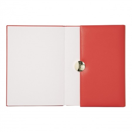 Crafted in a refined poppy red soft texture and adorned with an elegant light gold medallion signature, the Medaillon A6 notebook of Nina Ricci is feminine and luxurious.