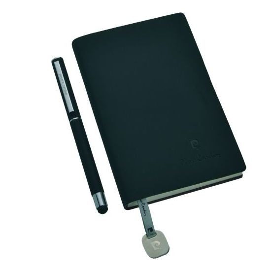 Elegancki notes o formacie A6 w komplecie z piórem kulkowym. Notes posiada 224 strony (80 g/m2), zakładkę z metalowym elementem oraz przyjemną w dotyku okładkę wykonaną z PU. Pióro kulkowe zostało wyposażone w niemiecki wkład Schneider piszący na niebiesko (0,5 mm) oraz funkcję touch pen. Całość zapakowana w eleganckie pudełko prezentowe z certyfikatem autentyczności Pierre Cardin.