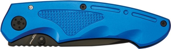 Nóż kieszonkowy z aluminiową rękojeścią i sprzączką aluminium/stal nierdzewna.