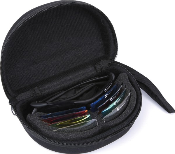 Uniwersalne okulary przeciwsłoneczne Schwarzwolf z wymiennymi soczewkami. Soczewki : przyciemniane, przezroczyste, REVO blue (sporty wodne), REVO green (do jazdy samochodem), REVO red (do jazdy na nartach). Czarne plastikowe oprawki, soczewki poliwęglanowe UV 400. Zapakowane w czarny woreczek z mikrofibly i twarde etui.
