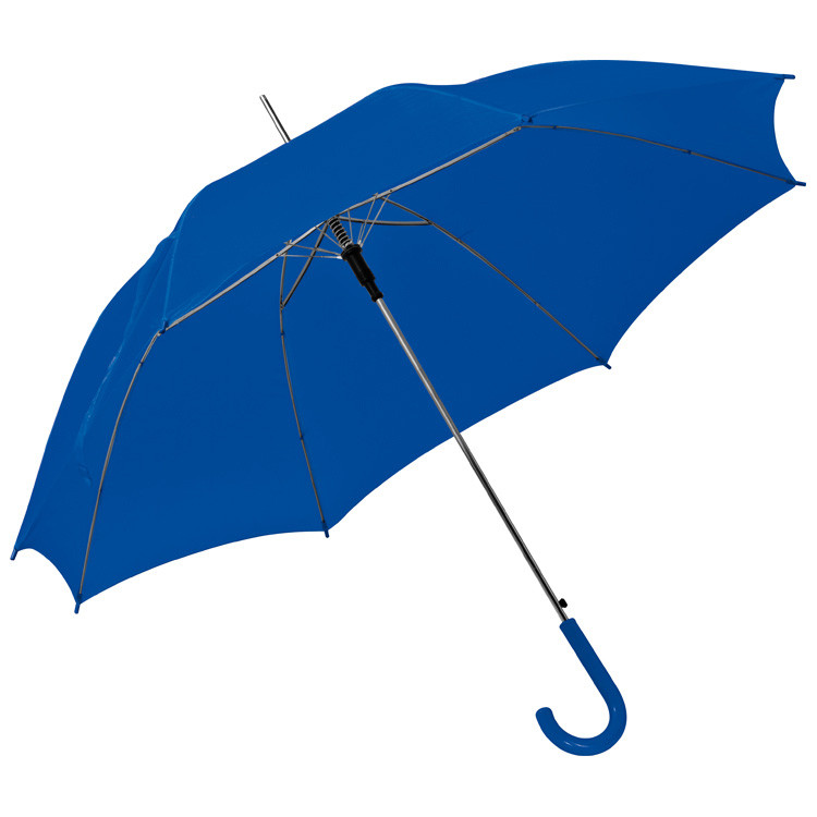 Automatyczny parasol z wygiętą, plastikową rączką. Z tym parasolem Twoja reklama będzie widoczna z daleka! Pakowany w foliową torbę. Logotyp umieszczamy na brycie parasola.