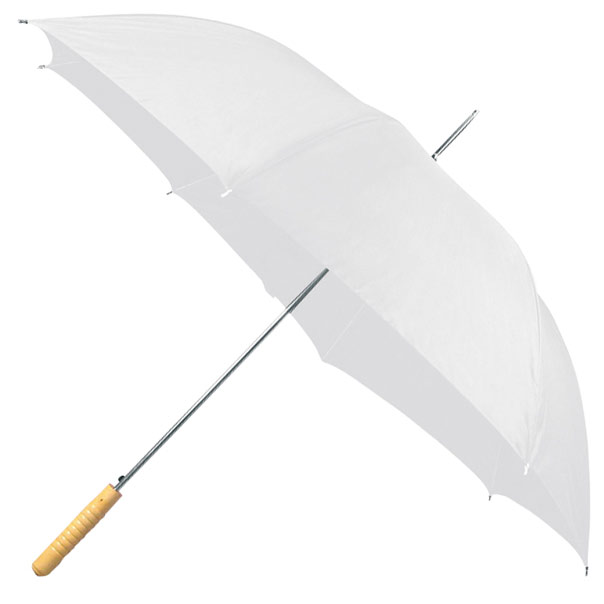 Automatyczny parasol z prostą, drewnianą rączką. Żywe kolory przyciągają wzrok dzięki czemu parasol stanowi skuteczne medium reklamowe.