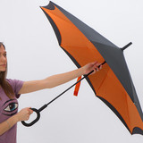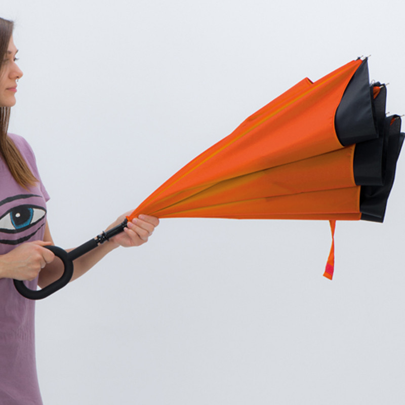 Parasol składany odwrotnie niż tradycyjny, dzięki czemu można np. bez problemu wyjść z samochodu w trakcie deszczu. Parasol wykonany z podwójnej tkaniny typu pongee 190T. Parasol składany odwrotnie niż tradycyjny, dzięki czemu można np. bez problemu wyjść z samochodu w trakcie deszczu. Parasol wykonany z podwójnej tkaniny typu pongee 190T.