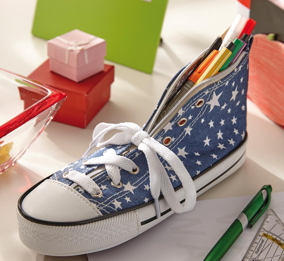 Piórnik COOL RUN w kształcie trampka, z sznurówkami i suwakiem do otwierania i zamykania.