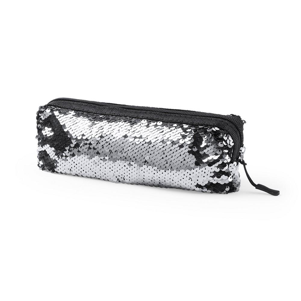 Piórnik, kosmetyczka z cekinami, główna przegroda na zamek błyskawiczny, po przesunięciu palcem cekiny zmieniają kolor