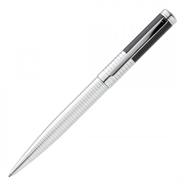 Instrumenty piśmiennicze `Crosswall` z kolekcji CERRUTI 1881 są zgrabne i eleganckie. Ich konstrukcja polega na wymieszaniu powierzchni platerowanej wygrawerowanym wzorem poziomych pasków, z detalami w kolorze lakieru. Top zdobi luksusowo tłoczone logo CRR. Linia dostępna jest w kontrastowym chromie i czerni lub w bardziej monochromatycznych pistoletach i ciemnej szarości.