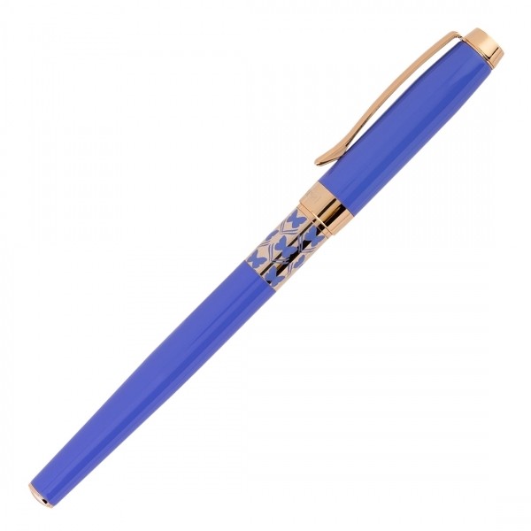 Pióro kulkowe Hortense jest ozdobione pięknym błyszczącym lakierem i metalicznymi motywami motylkowymi, które zapewniają luksusowe i kobiece doznania podczas pisania. Dostępny jest w kolorach liliowym niebieskim i złotym, granatowym i chromowym oraz różowym i złotym.